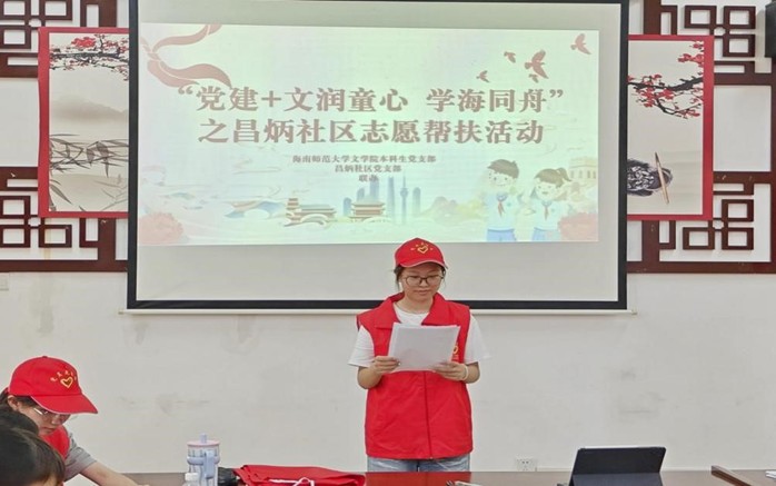 为深入推进文学院本科生党支部与昌炳社区党支部联建工作,进一步发挥学生党员的先锋模范作用,助力社区少年儿童成长成才,加强实践育人,2025年10月12日,海南师范大学文学院“党建+文润童心 学海同舟”志愿服务队赴昌炳社区开展本学期第一场志愿服务活动。本次活动由文学院党委书记郑海妹统筹策划、纪委书记陈俊峰具体指导,本科生第一党支部和第二党支部联合承办,学生党员及志愿服务队员23人参加本次活动。