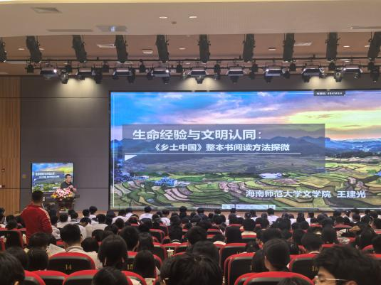 11月20日晚,文学院副教授王建光在海师附中江东校区锦绣楼多功能厅开展题为“生命经验与文明认同:《乡土中国》整本书阅读方法探微”的讲座。