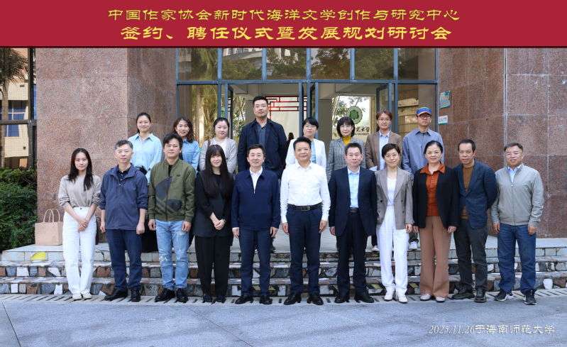 11月26日,中国作家协会新时代海洋文学创作与研究中心在我校龙昆南校区第一办公楼三楼会议室举行签约、聘任仪式暨发展规划研讨会。我校人文社会科学院负责人罗璠教授主持活动,校长聂清斌出席,来自海南省文联、海南省作协、南方出版社、海南大学和我校文学院的教师代表二十余人参加活动。