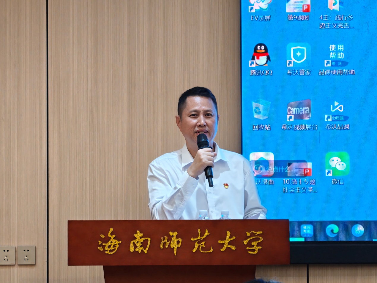 12 月 24 日下午,文学院组织全体研究生在桂林洋校区第二公共楼109教室召开研究生警示教育主题会议,本次会议邀请海南师范大学团委副书记郑伟民作题为“筑牢高校意识形态防线 守护思想净土”的报告。