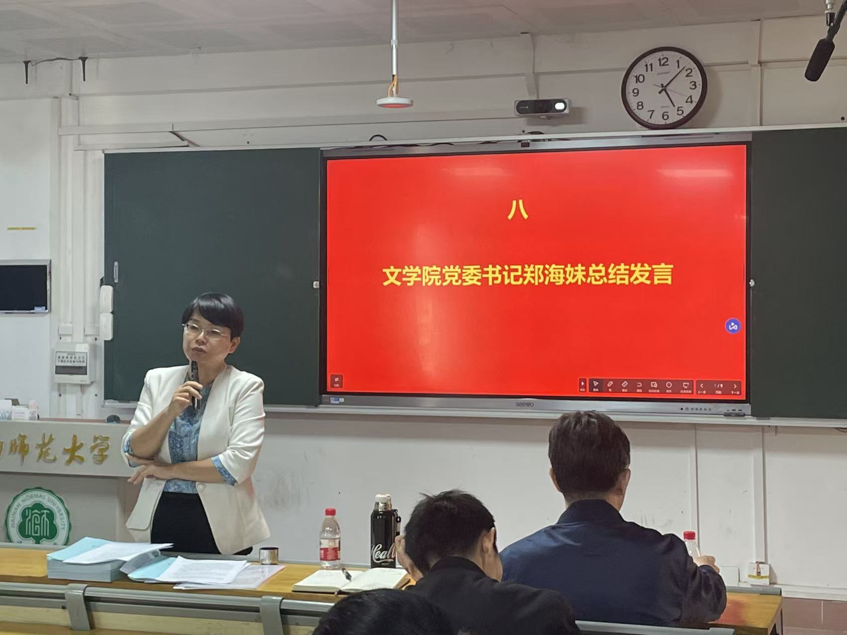 最后,院长王学振和党委书记郑海妹对本次会议进行了总结。王学振指出,当前研究生管理存在问题,为规避管理风险,研究生导师与辅导员应按照相关规定,严格落实研究生请假制度;郑海妹对我院研究生导师获得“优秀导师团队”荣誉表示肯定,她指出,研究生导师应明确职责,将“三全育人”落实到位,研究生导师不仅要做学生的学业导师,更要努力做学生的人生导师。