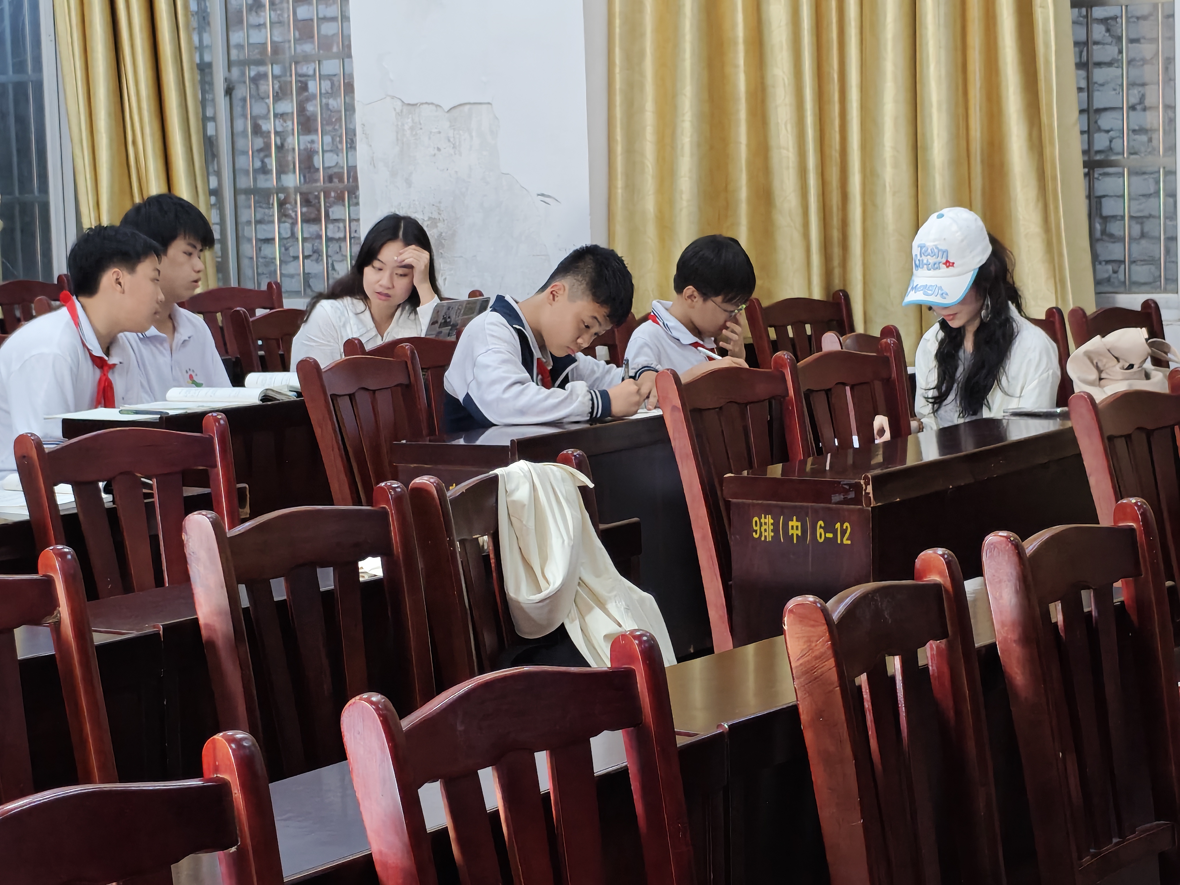 同步进行的“学业精准帮扶”活动则更具针对性。帮扶团的党员们在与学生深入交流后,将辅导重点聚焦于学生们课后反馈的、个体存在的具体知识难点与能力短板。附属中学蓝老师在活动指导中特别指出,帮扶要力求实效,应“针对重点学生进行帮扶,帮助那些真正想学的同学”。帮扶不仅在于解答一道题,更在于疏通一种思路,激发一份主动探究的意愿。为巩固帮扶效果,建立长效支持机制,双方商定,在下一阶段的活动中,帮扶团将依据初中语文教学进度,重点对课后要求掌握的生字、生词及成语进行系统梳理、讲解与课堂默写训练,从基础知识层面夯实学生的语言根基,为其后续学习扫清障碍。